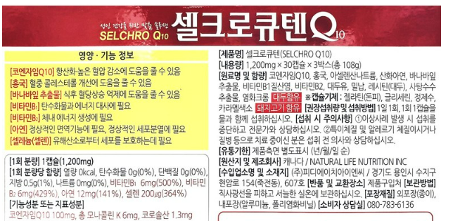 - 원(재)료명 및 함량: 상품 상세설명 참조