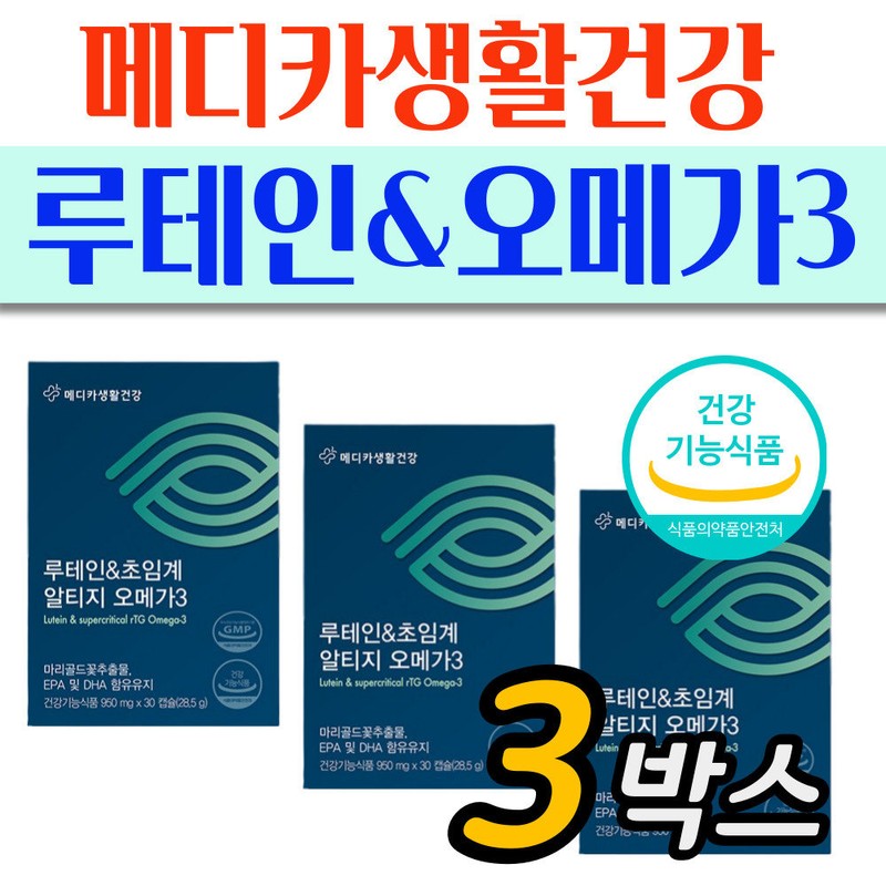 [On Sale] Medica Eye Health, Blood Circulation Health, AltiGomega 3, meets the Ministry of Food and Drug Safety's intake for 3 months and maintains lutein, EPA and DHA content / [온세일]메디카 눈건강 혈행건강 알티지오메가3 3개월 식약처 섭취량 충족 루테인 EPA DHA 함유 유지