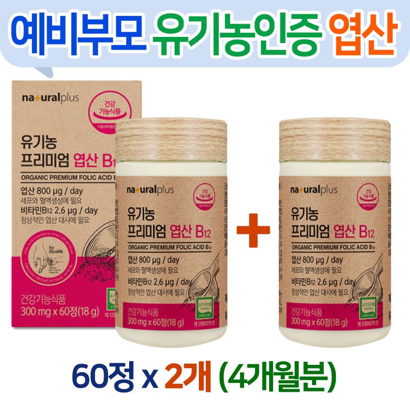 [On Sale] Recommended by prospective parents Certified Organic Folic Acid 800 Vitamin B9 B12 Cells Blood Production Fetal Neural Tube Normal Development Brain Spinal Cord Formation Basic Tissue / [온세일]예비 부모 추천 유기농 인증 엽산 800 비타민 B9 B12 세포 혈액 생성 태아 신경관 정상 발달 뇌 척수 형성 기초 조직