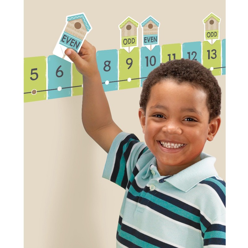 - QUANTITY AND QUALITY IN THE PACKAGE - This set includes 14 number strips of ten numbers each (each measuring 22" x 3-3/4), a "zero" piece, 12 birdhouses (odds and evens), and 7 bird cut-outs. They hang easily on walls, doors, cubicle walls, or corkboards with tape, staples, or magnets. All TREND Learning Sets are quality-tested to meet product safety standards and are all proudly made in the USA. TREND has been a trusted partner to teachers, daycares, and homes since 1968.