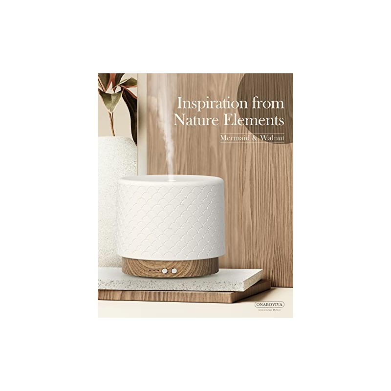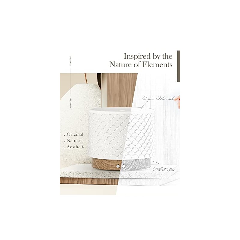 - Inspired by the Mermaid- Onaboviva essential oil diffusers draw inspiration from mermaid,made of handmade Ceramic Cover, pair with Imitation Walnut Texture Base,perfectly matches any decorative style