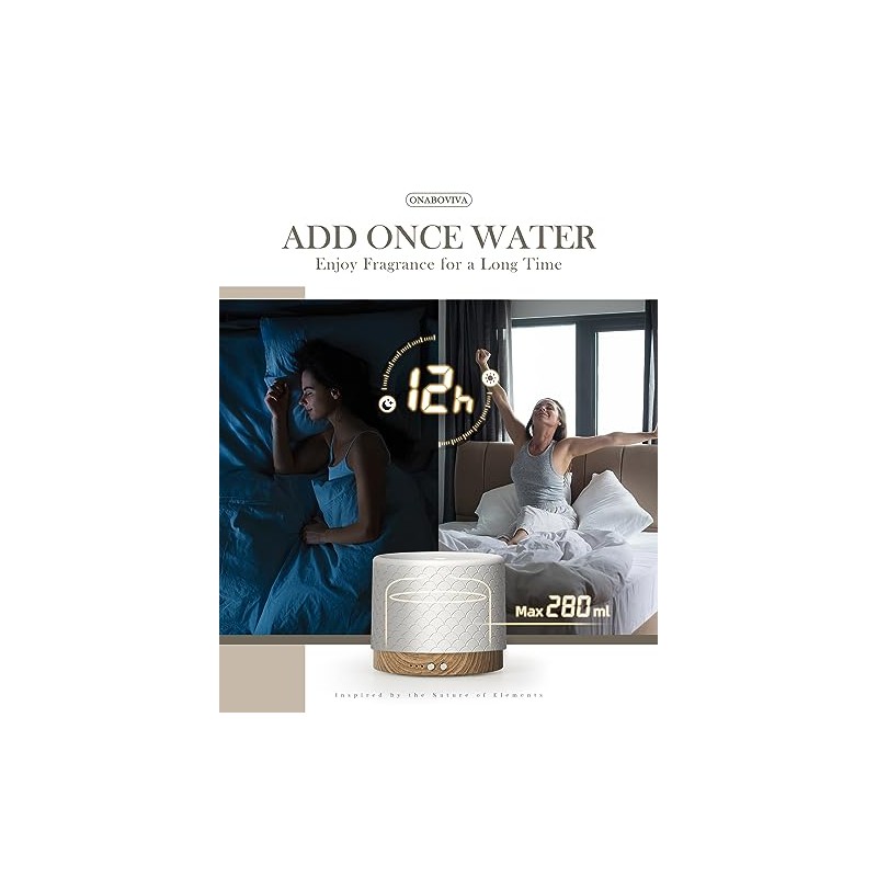 - Low Noise & Sleep Better - Whisper-quiet setting(18dB), this diffusers for home runs quiet enough. Innovative SLEEP HELPER function--Light will auto off in 30 minutes. 3 Interval Timer(1H/3H/8H). Intermittent/Continuous mist mode options. Maxium 280ml