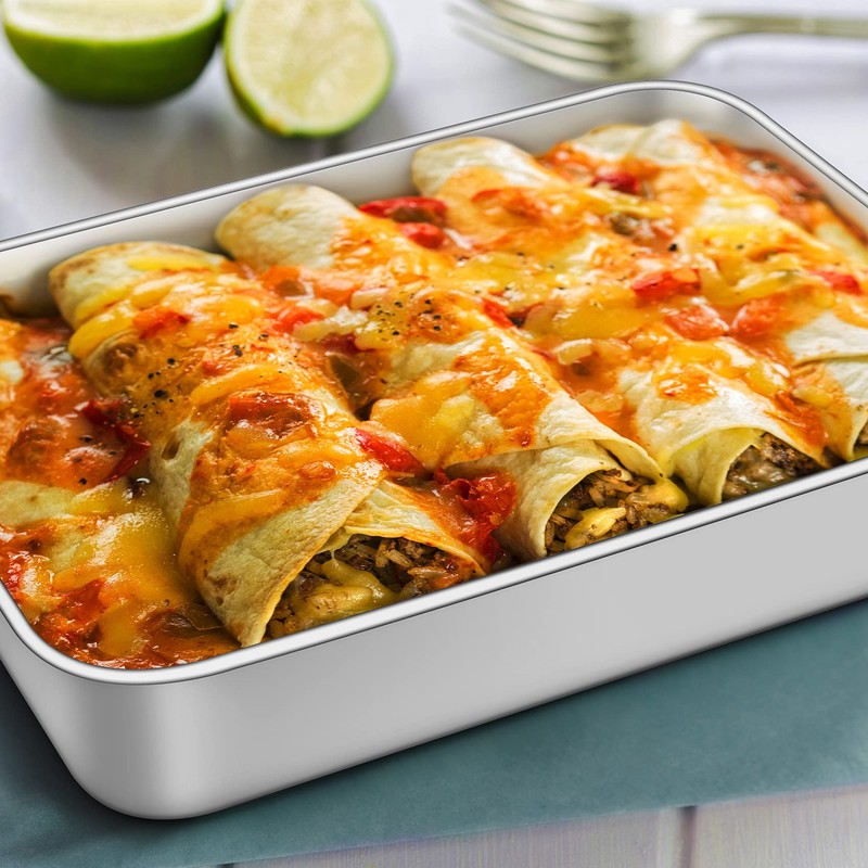- Healthy and non-toxic: made of high-quality 18/0 stainless steel, when baking at high heat, no harmful substances get into the middle of food, unlike other aluminium/Telfone coating pans, no chemical coating that peels, hygienic and reliable for everyday use