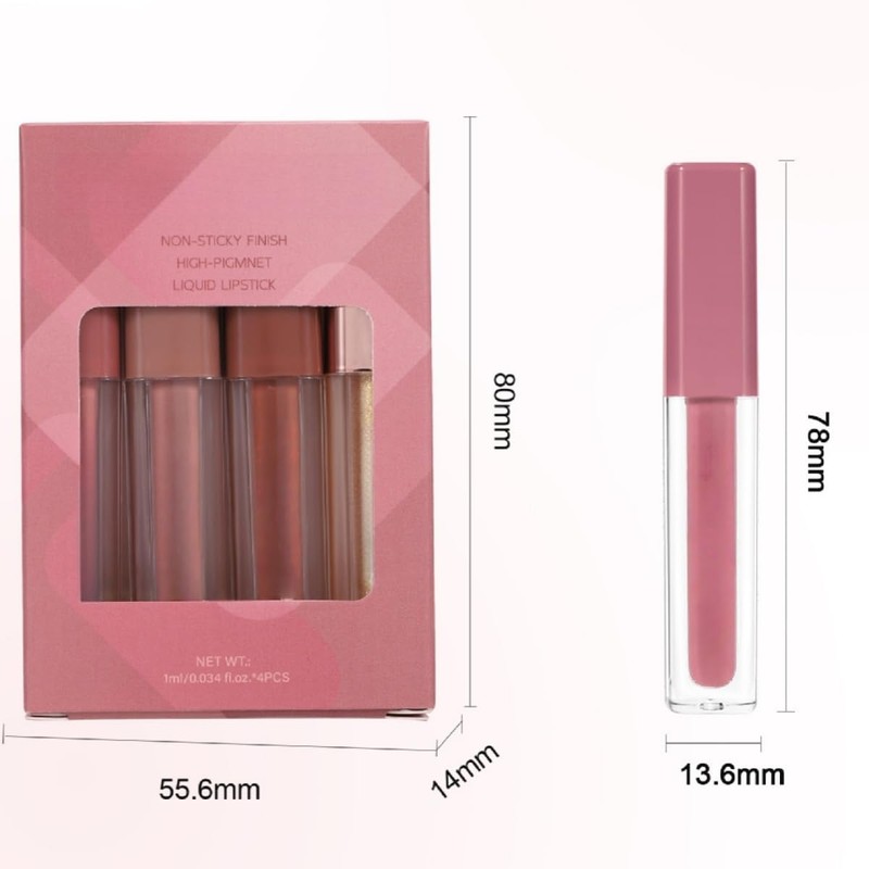 ONarisae Lip Gloss Set Waterproof Smudge-Proof Matt& Clear Lipgloss Set 4 Colors