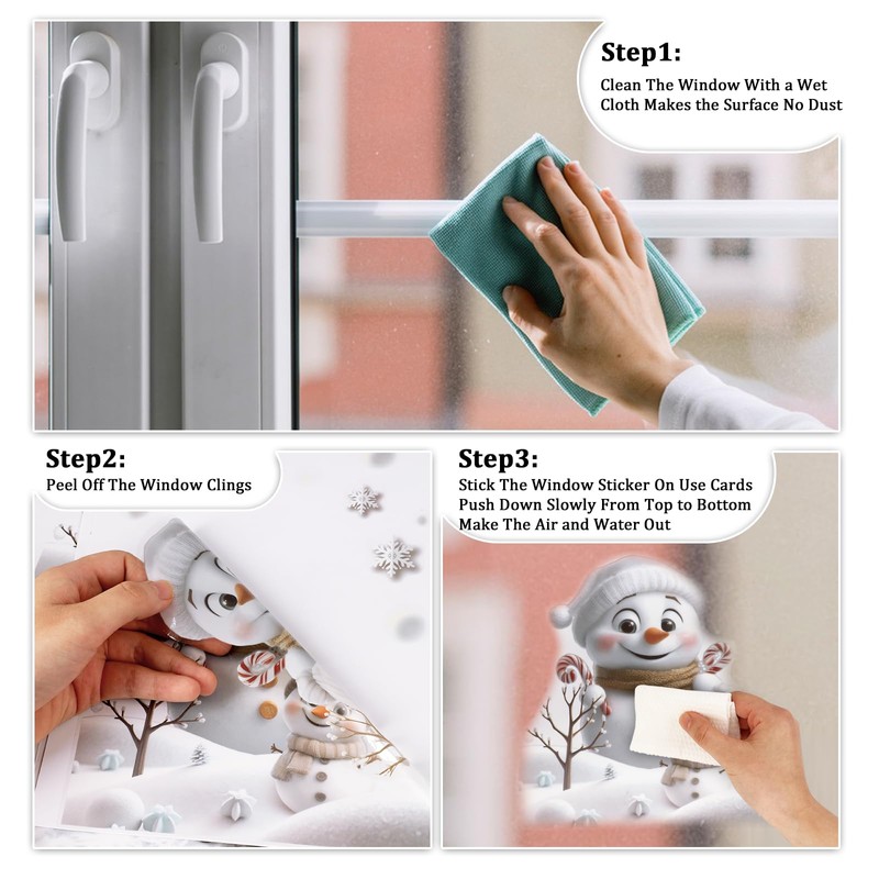 - **Material**: Made from non-toxic PVC material, these window Christmas decorations feature electrostatic adsorption, making them waterproof and environmentally friendly. Without any glue, these Christmas decoration sticker won’t leave any residue behind and can be easily relocated and reused.