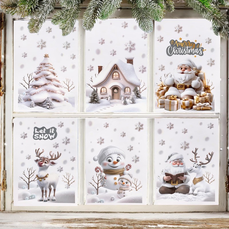 - **Package**: Each set includes 6 sheets of Christmas window stickers, with each sheet measuring 22*30cm. This extensive assortment of window stickers provides you with plenty of options to satisfy all your Christmas window decoration needs.