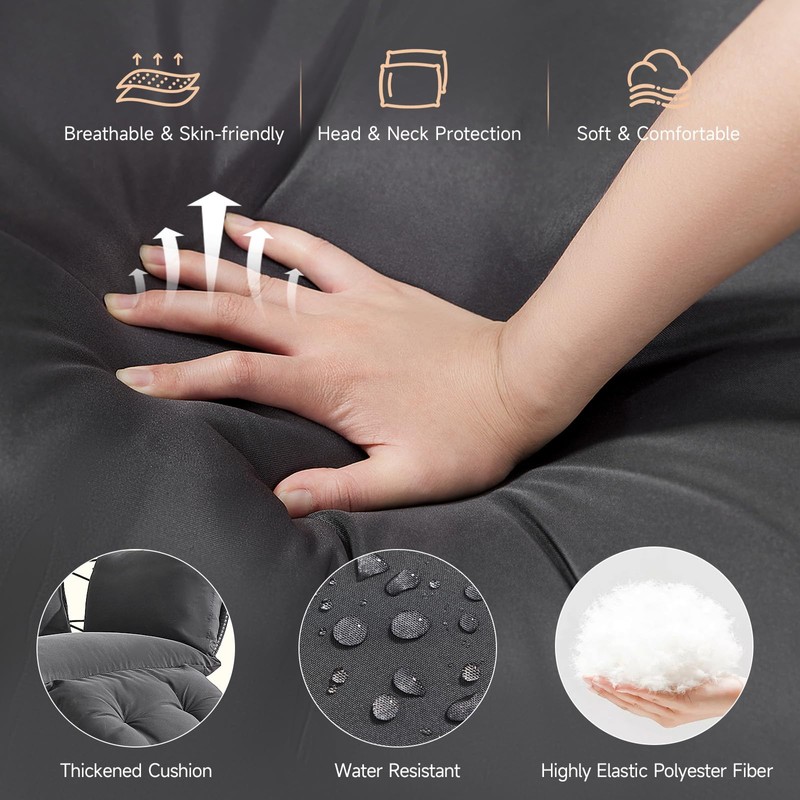 - Comfortable & Removable Cushion: Relax in ultimate comfort with an elastic polyester seat cushion, headrest and footrest, filled with high-density fiber for lasting softness. And its breathable mesh lining keeps the filling secure, allow easy removal of the outer cover(Note: cushions take 24-48 hours to regain fullness)