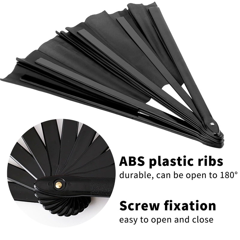Oncpcare Fans for Line Dancing, Foldable Kung Fu Tai Chi Handheld Line Dance Popping Fan for EDM, Music Festival, Club, Event, Party, Dance, Performance (Black)