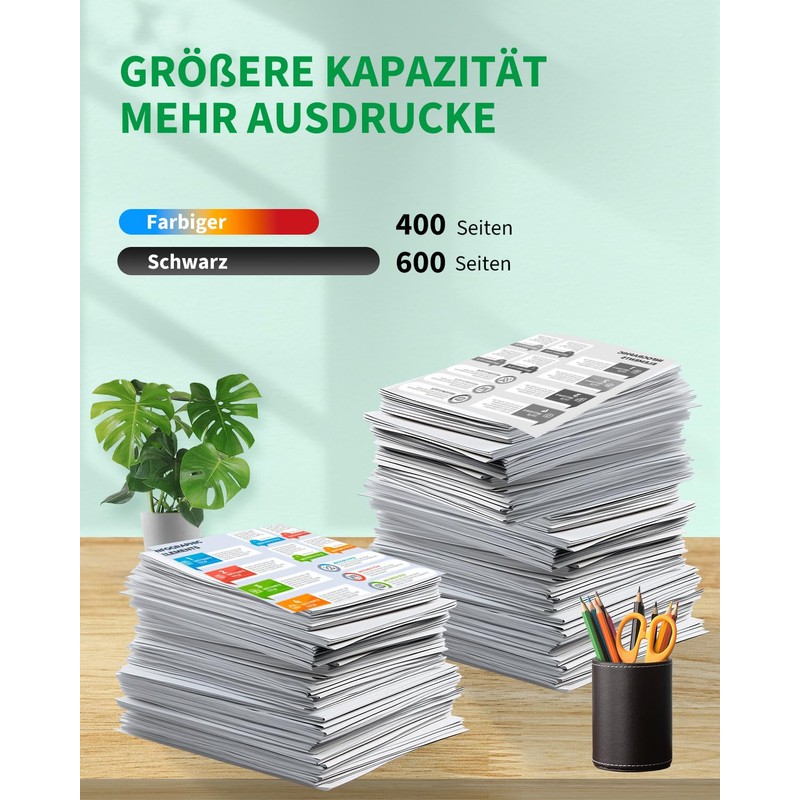 - Extra large capacity: 600 pages per 603XL black cartridge, 500 pages per 603XL cyan/magenta/yellow cartridge at 5% coverage on A4 paper.