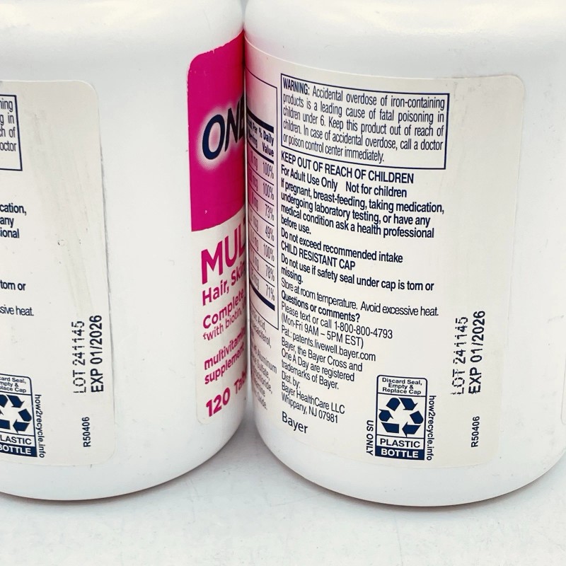 One A Day 2 Pack ONE A DAY Multi + Hair Skin & Nails Multivitamin Tablets 120Ct Exp 1/2026