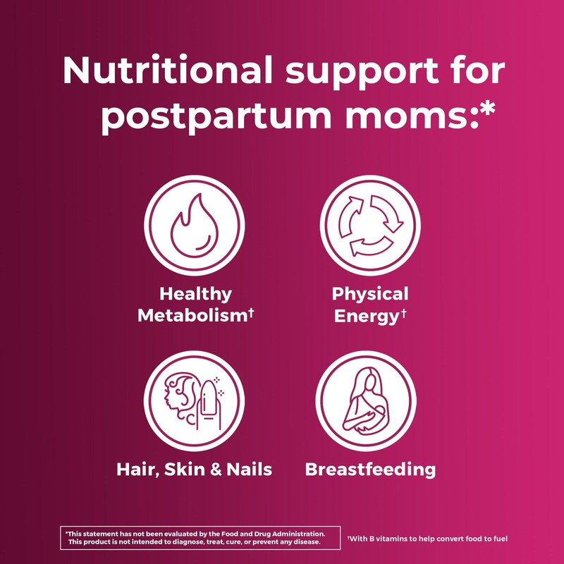 - Formulated to help meet the increased nutrient needs to support baby's healthy development, as well as supporting mom's health and energy.
