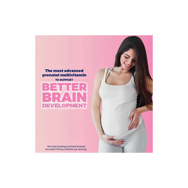El multivitamínico prenatal más avanzado para el desarrollo cerebral y cognitivo con tres nutrientes esenciales para el cerebro, incluyendo 110 mg de colina*
