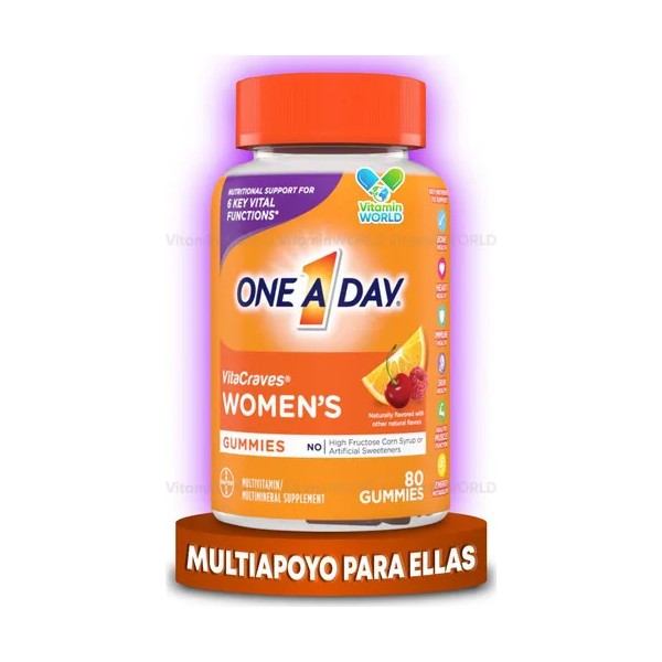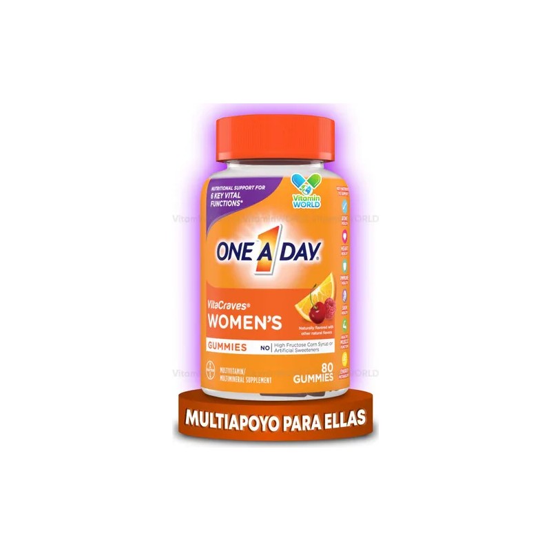 One A Day Women´s Mujer Multivitaminas es un multivitamínico completo especialmente diseñado para atender las principales necesidades de las mujeres, incluyendo la salud ósea. Contiene nutrientes clave como vitaminas A, B6, C, D, E, K, riboflavina, tiamina y niacina. Formulado para apoyar la salud ósea, inmunológica, de la piel, cardíaca y la energía física, ayudando a convertir los alimentos en combustible. Las mujeres adultas deben tomar una tableta al día con alimentos. One A Day Multivitamínico para mujer está libre de gluten, trigo, lácteos, sabores artificiales y edulcorantes artificiales. Las vitaminas cumplen con las regulaciones de etiquetado de la FDA.