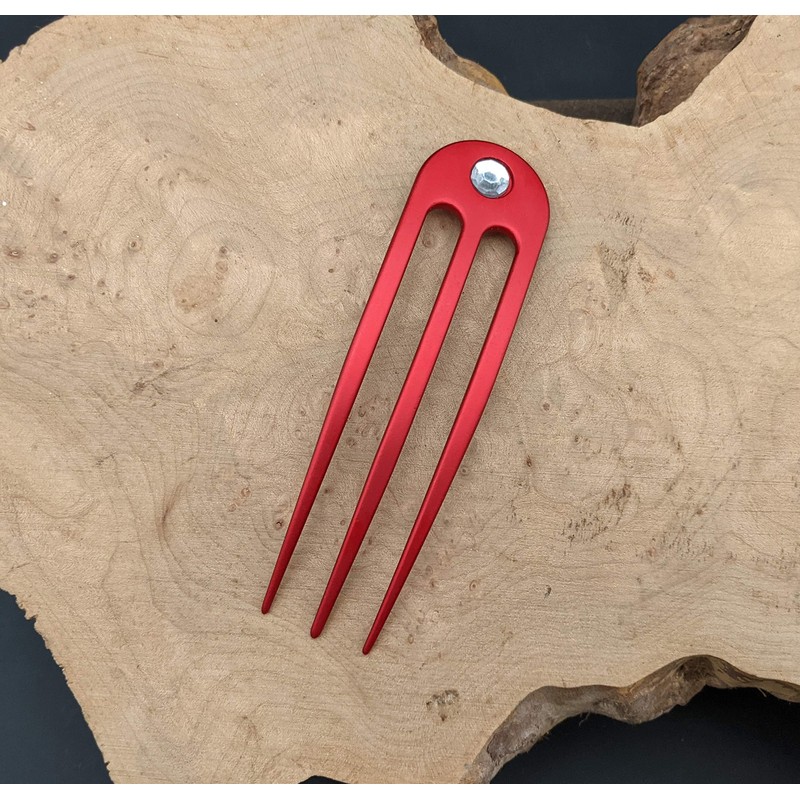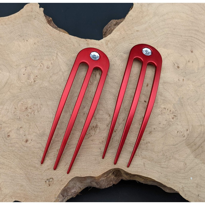 - Anodized Matte Colored Aluminum 4.9" Curved Three Prong Hair Fork