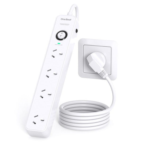 One Beat Power Board Surge Protected, One Switch Control, Power Strip with 1M Extension Cord, 900J Surge Protection, Flat Plug, Wall Mount,Overload Protection,Powerboard for Home Office