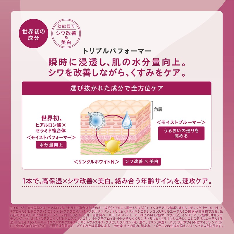 • (High Moisturizing Aging Care Lotion) Dense moisture for dry aging. Provides a firm bounce, shiny skin while reducing wrinkles. High moisturizing aging care *Lotion water. Care for according to age