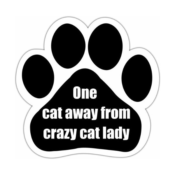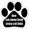 "One Cat Away From Crazy Cat Lady" Car Magnet With Unique Paw Shaped Design Measures 5.2 by 5.2 Inches Covered In UV Gloss For Weather Protection