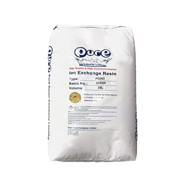 - 1 Cubic Foot of Cation Resin for Home Water Softeners Designed for optimal performance across a wide range of water treatment applications, this cation resin is perfect for refilling home water softeners and is compatible with various water softening, dealkalization, deionization, and chemical processing systems. In its H form (PC003H), this resin is highly effective when used in both multiple and mixed bed demineralizers in conjunction with strong base anion exchangers, such as Pure OH- form resins. Ideal for a variety of applications, this product ensures reliable ion exchange processes, enhancing the efficiency of water purification systems.