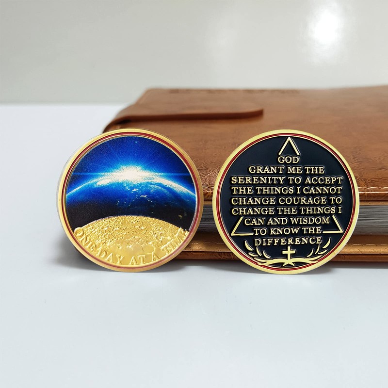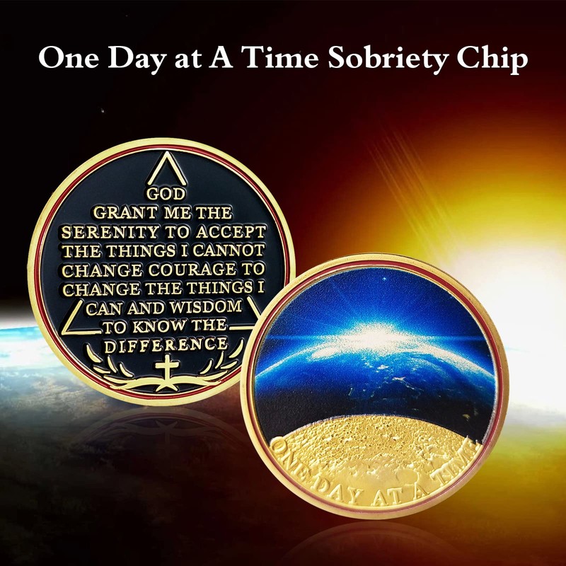 One Day at A Time Sobriety Coin Universe Sun Earth Moon AA Medallion Serenity Prayer Chip Pocket Token