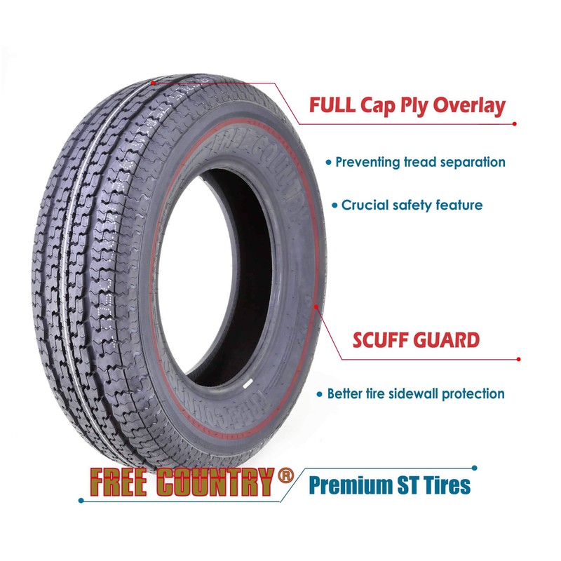 One FREE COUNTRY Premium Trailer Tire ST225/75R15 Radial 10PR Load Range E w/Featured Scuff Guard