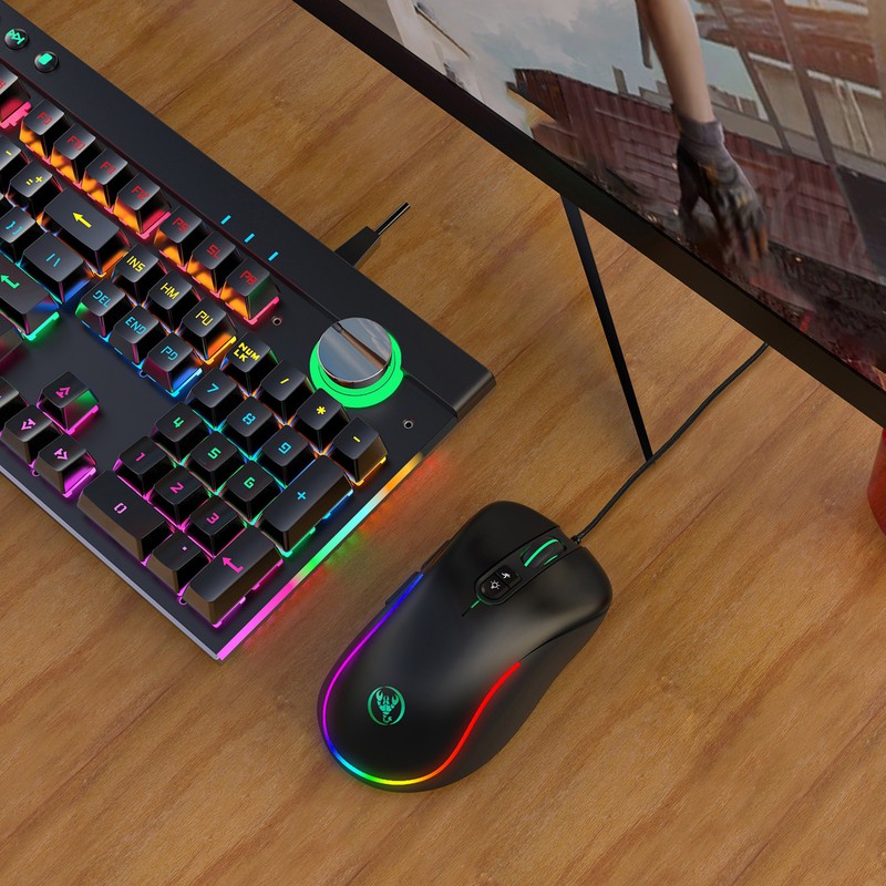【Muti-Modes for Lighting Effects】There are two modes of lighting effects of this RGB gaming keypads: seven single-color and one mixed-color lights are able to cycle when you press FN and F3. Press FN and F4, then colorful Cycle horse race mode would on display. As to the gaming mouse, there are 7 programmable RGB backlight mode on it, just with a light touch, the RGB light mode can switch quickly which creates an amazing gaming atmosphere at your preference. So both the keyboard and mouse have multiple lighting modes to be switched at wish.
