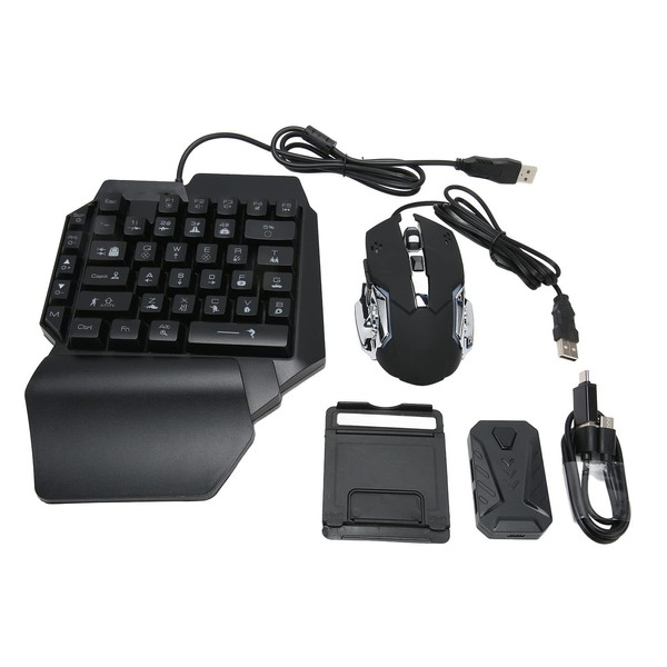 One Handed RGB Gaming Keyboard and Backlit Mouse Combo, USB Wired Half Hand Gaming Keyboard and Mouse Combo with Converter, for Game