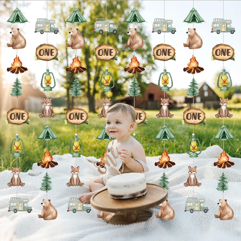 - This woodland one birthday decorations set include 8PCS camping themed hanging swirls while the length of each hanging swirls is about 47inches(120CM)