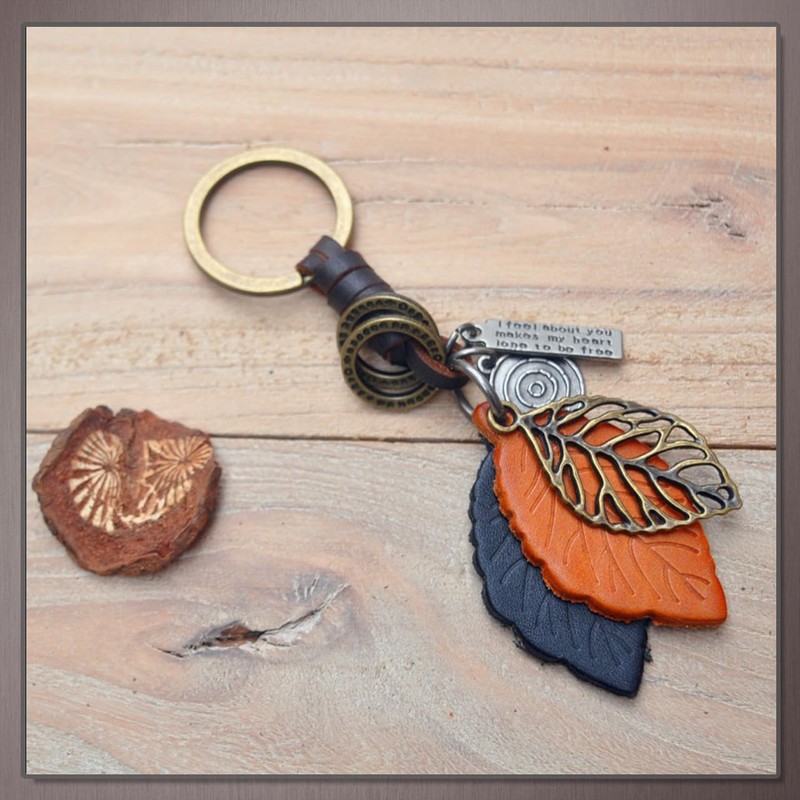 - This leather key chain features a three-leaf motif and is fashionable enough to match any outfit. Casual style that can be worn by both men and women is attractive, making it the perfect everyday accessory for everyday wear