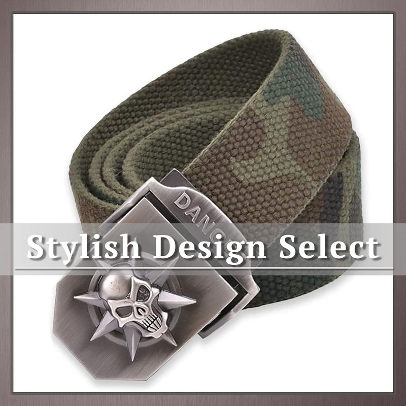 ONE LIMITATION BP001 Skull Buckle Braided Belt, Casual, Camouflage, One Size Fits Most