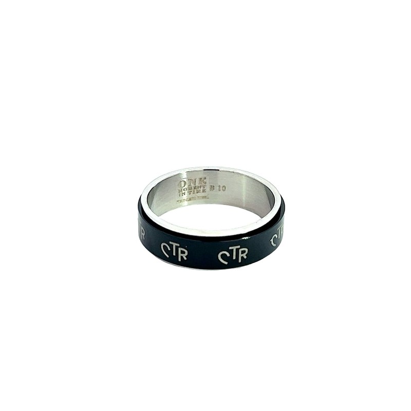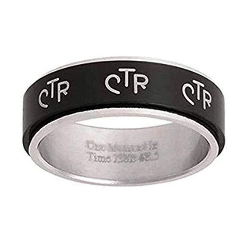 One Moment In Time J38B Size 7 Black Stainless Steel Spinner Ring Mormon LDS CTR