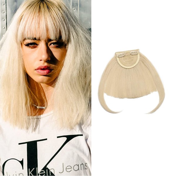 One Piece Bangs Clip in Front Fringe Clip on Hair Bang Extensions Synthetic Hairpieces with Temples #Bleach Blond