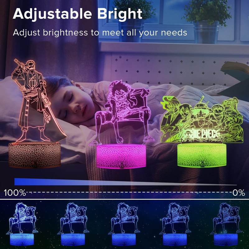 One Piece Luffy 3D Illusion Lamp Luffy Sanji Zoro Nami Night Light Children Touch with Remote Control Bedside Lamp, roronoa Zoro Anime Merch LED Desk Lamp Gadget Christmas Gifts 3 in 1