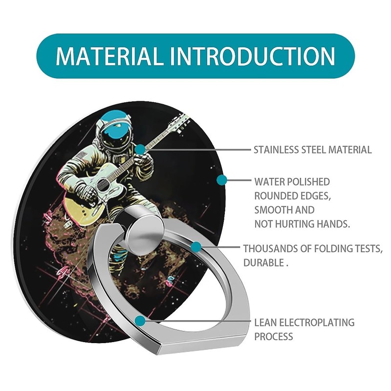 - Specifications:This Cool Astronaut Play Guitar pattern metal stand is beautifully designed and will not cover the pattern on your phone case! It's sturdy and eco-friendly, and it's super compact at only 1.5 inches in diameter. The shape is round!