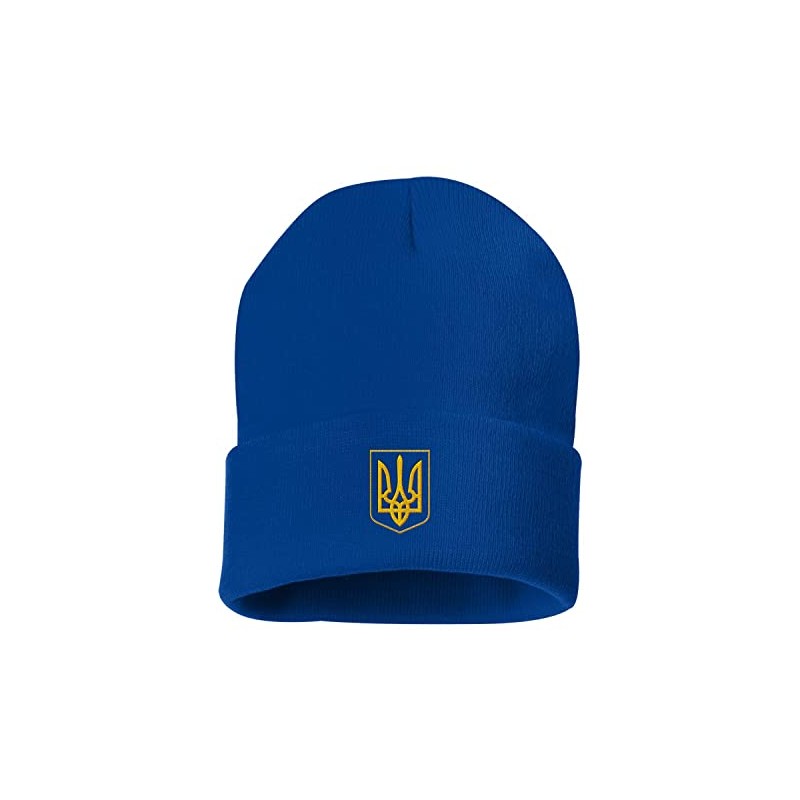 One Size Royal Cuffed Ukraine Coat of Arms | Embroidery, Ukrainian Pride Embroidered Cuffed Knit Beanie Cap