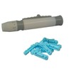 - The lancing device and lancets are simple tools to obtain a small blood sample