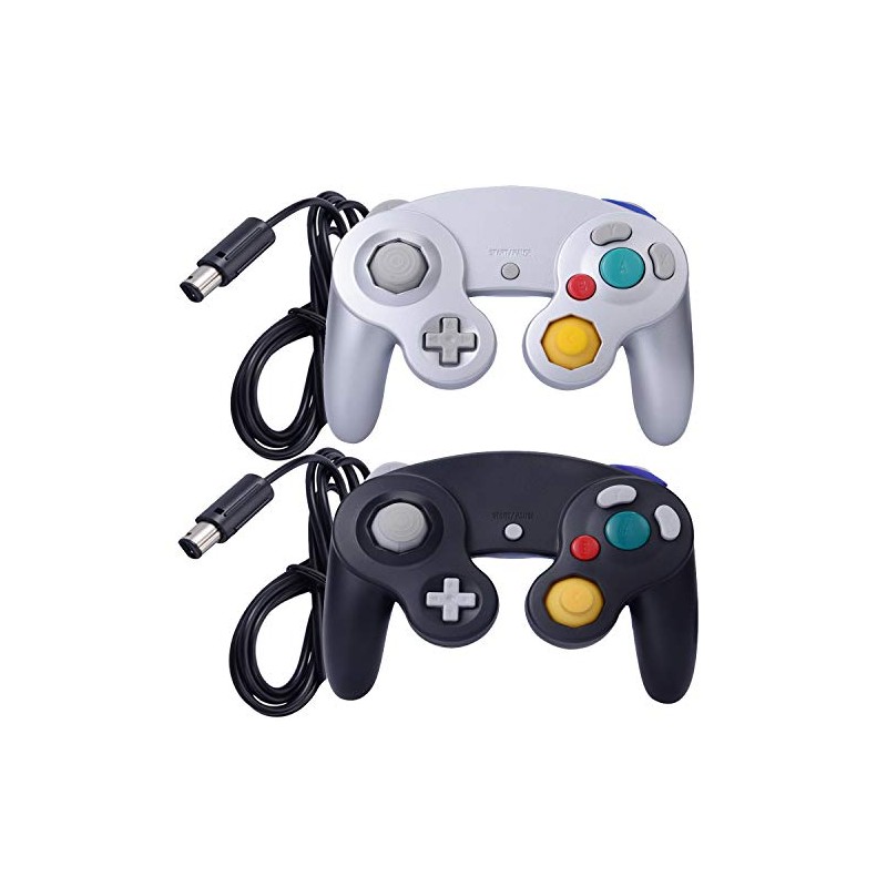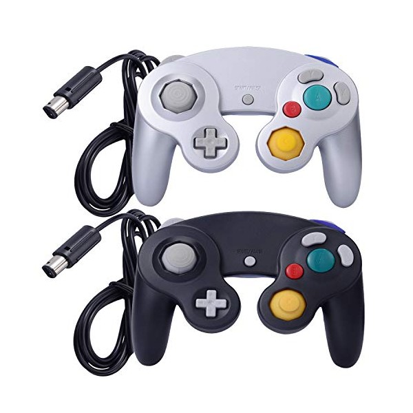ONE250 2 Pack Classic Shock Joypad Wired Controller, Compatible with Wii NGC Gamecube Game Cube (Black & Silver)