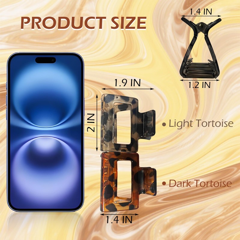 Oneasmot Small Claw Clips (2"), 2-Pack Acrylic Hair Clips for Thin Hair Petite Square Hairstyle Accessories for Women, Light & Dark Tortoiseshell