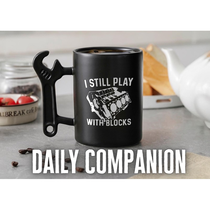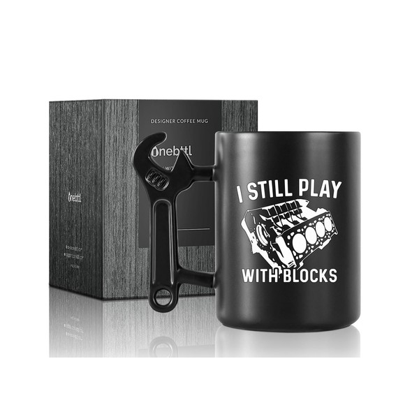 Onebttl Mechanic Gifts Wrench Coffee Mug, Mechanic Gift, 13.5oz/400ml Funny Ceramic Mug for Christmas, Father's Day, I Still Play with Blocks