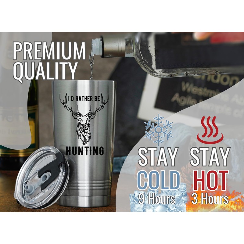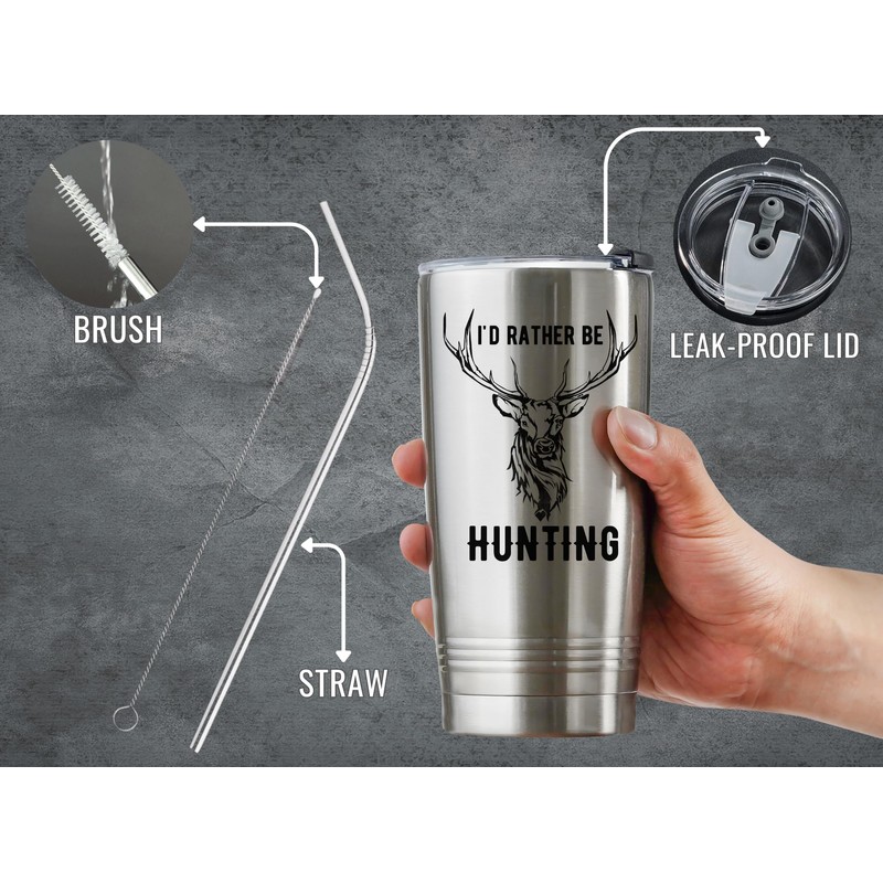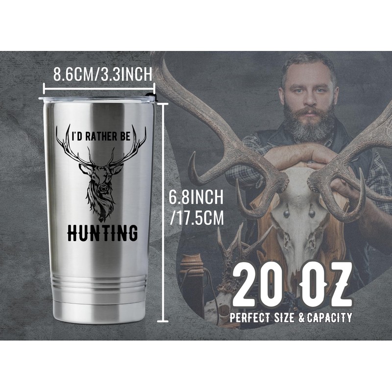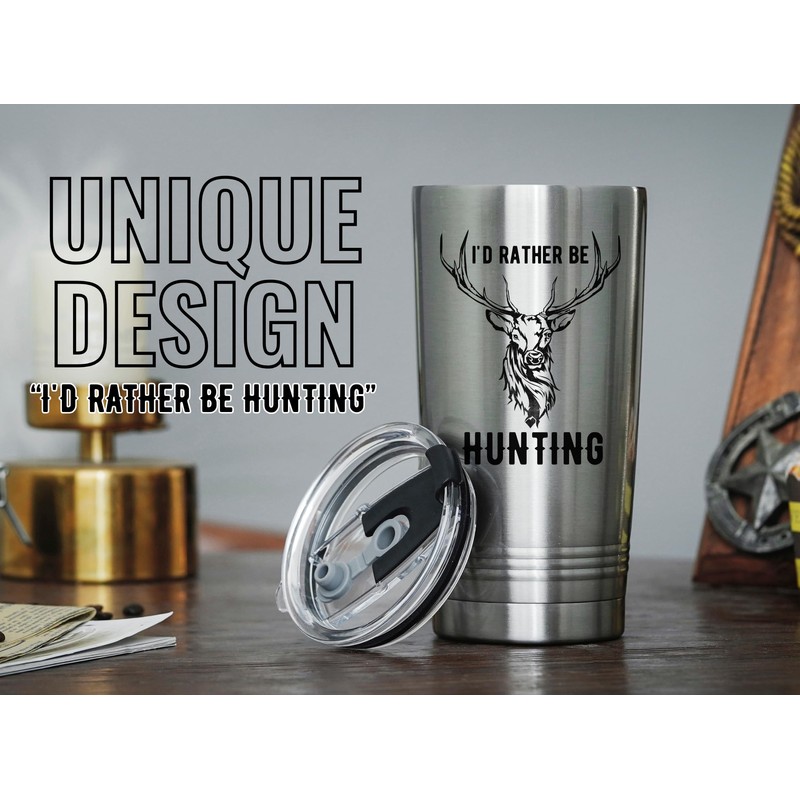 Onebttl Hunting Gifts for Men, 20oz Stainless Steel Tumbler with Spill-Proof Lid and Straw, Card & Box Included, Perfect for Hunter Dad, Husband, Grandpa, Steel - I'd Rather Be Hunting