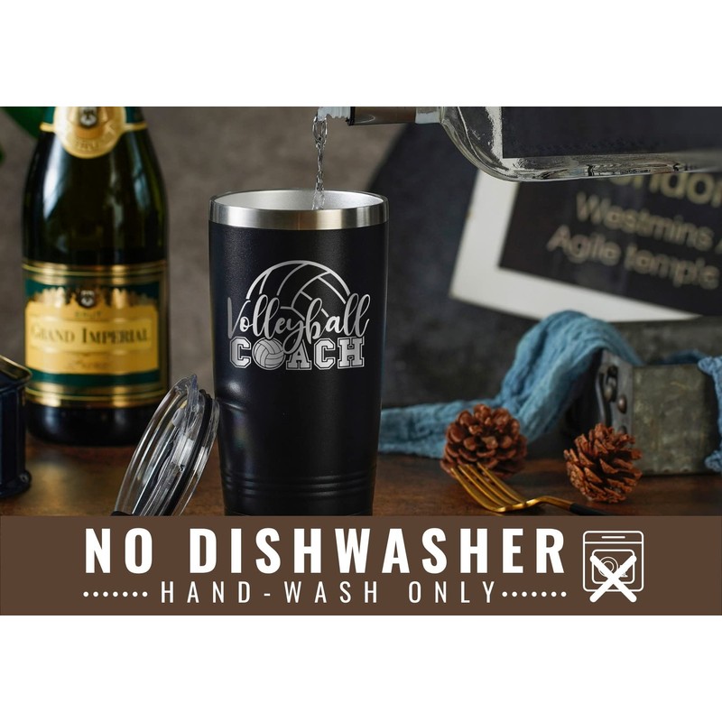 Onebttl Volleyball Coach Gift, Funny Gift Idea for Appreciation, Christmas, Birthday, 20oz Stainless Steel Insulated Travel Mug - Black