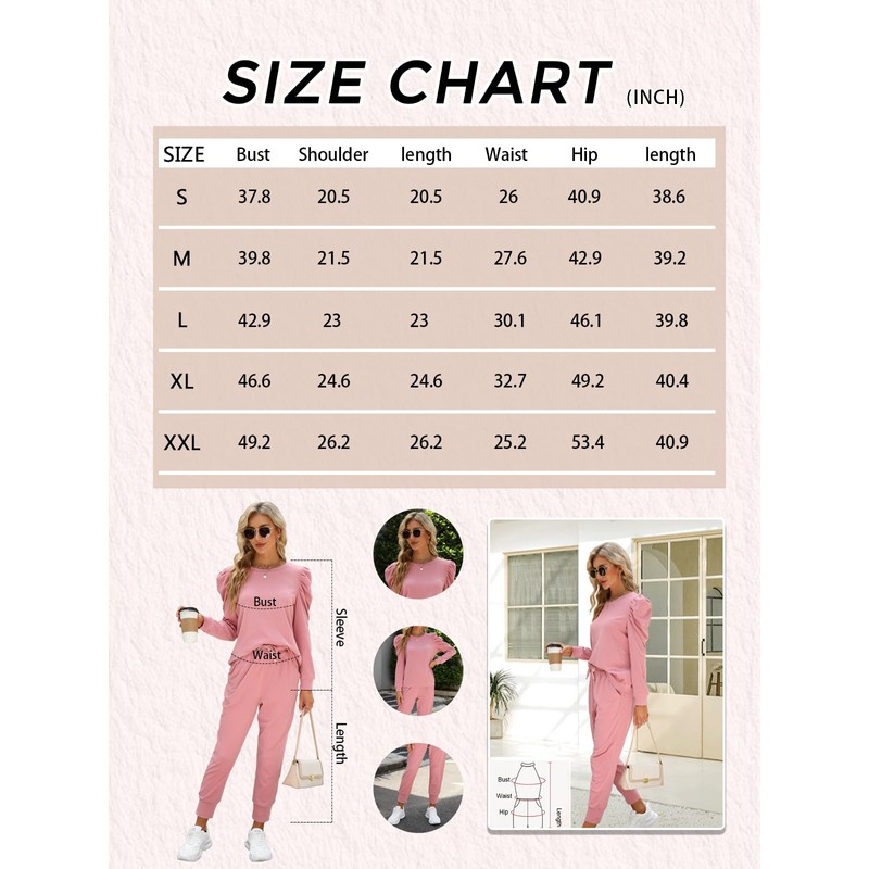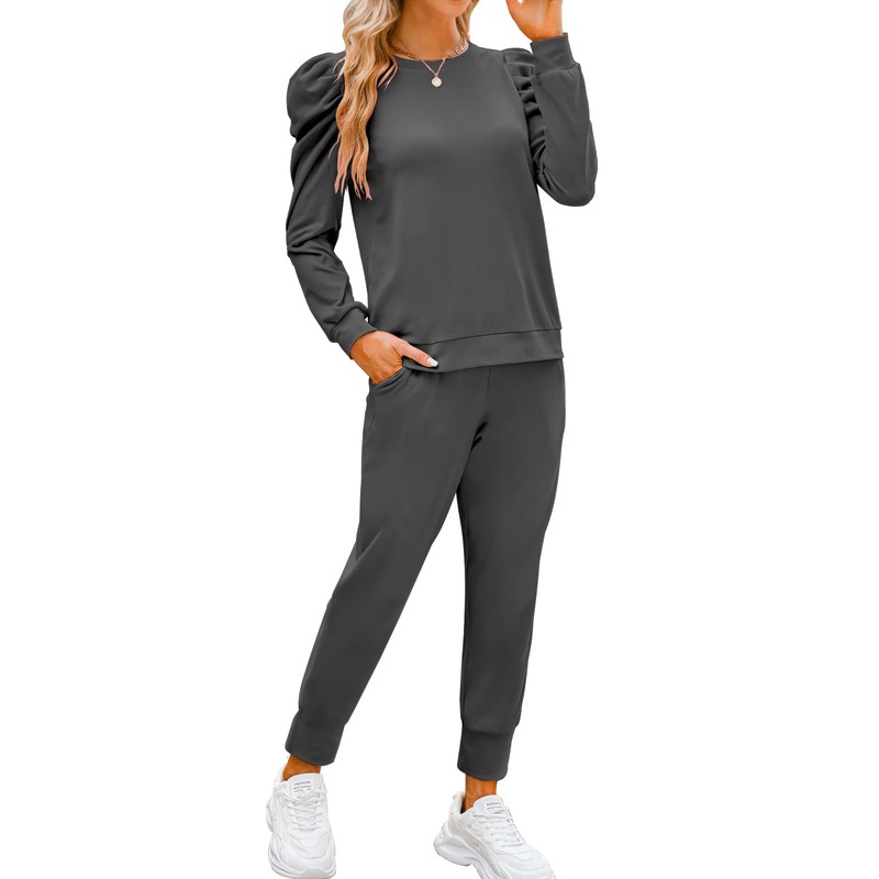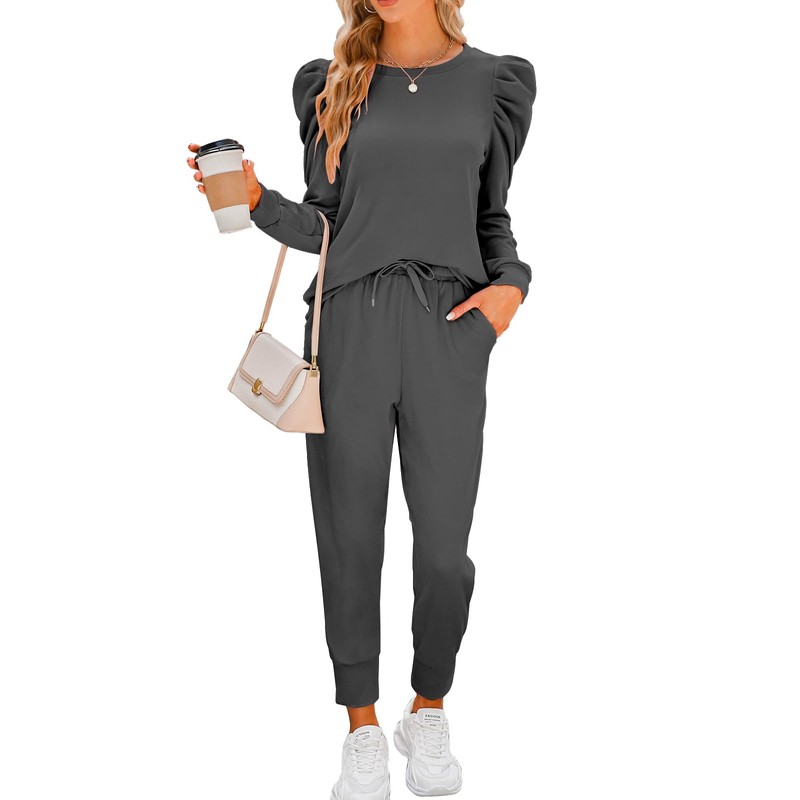 - Features: Womens sweatsuit set includes a puff long sleeve pullover and jogger pants, crew neck and solid colors, drawstring elastic waist joggers pants set, casual sport style.