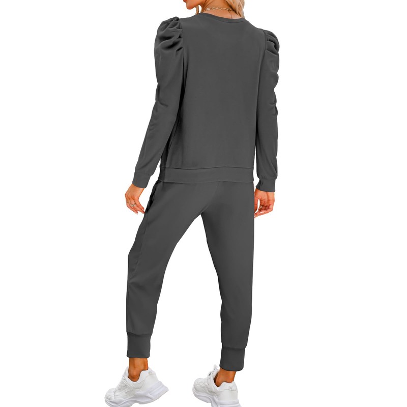 - Trendy style: Solid color design makes the whole more simple and concise, cute puff sleeve add your charm.The long sleeve pullover tops and long pants can be worn alone or as a lounge set.