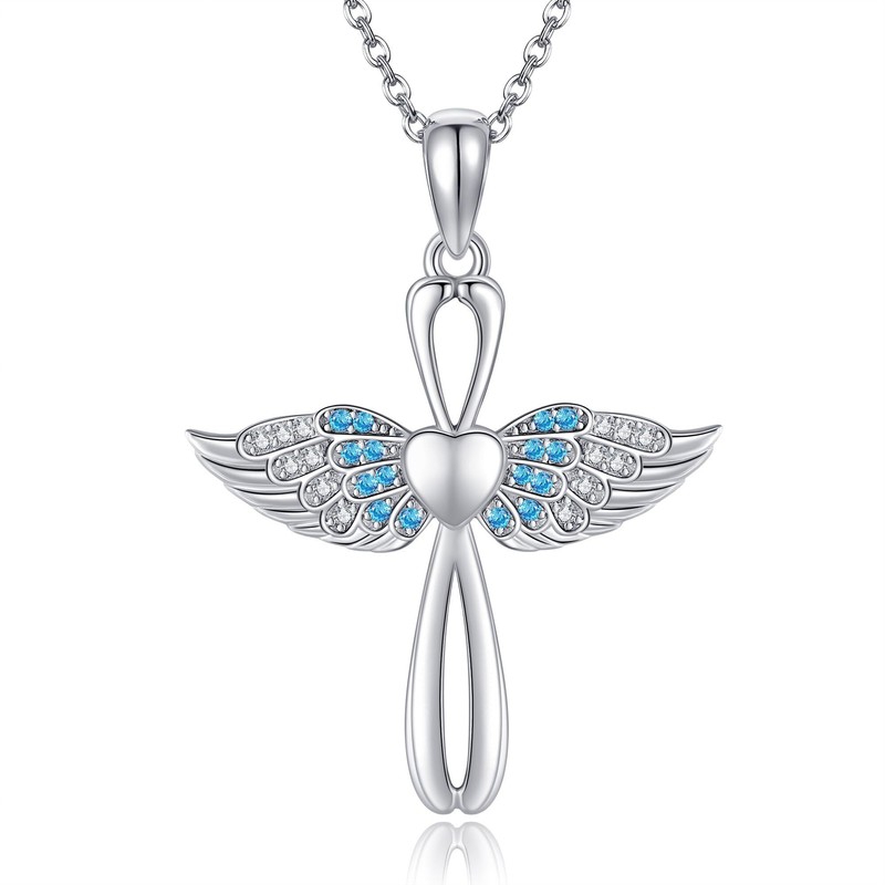 ONEFINITY Angel Wings Necklace 925 Sterling Silver Angel Wings Cross Pendant Angel Wings Jewellery Gifts for Women