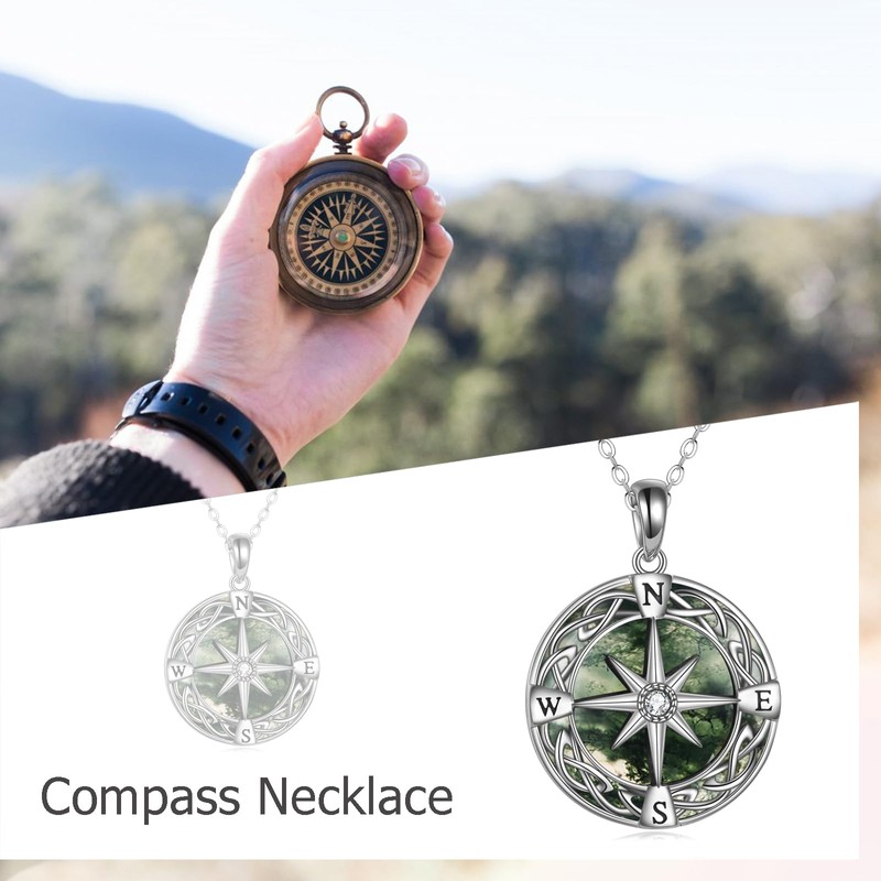ONEFINITY Compass Necklace Sterling Silver Celtic Knot Moss Agate Necklace Graduation Friendship Talisman Travel Necklace Inspirational Graduation Gift Jewelry Gifts For Women