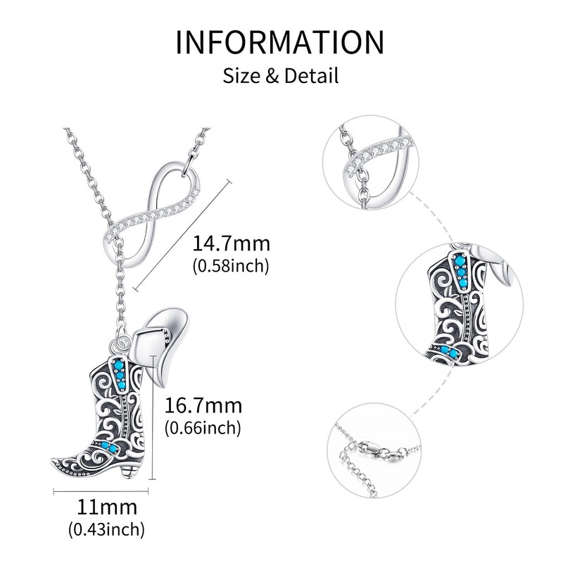 - 🤠Material🤠 The Cowboy boot necklace is sterling silver, Protect and safe for sensitive skin.No Nickle, Hypoallergenic,never rust, corrode, rust or stain.