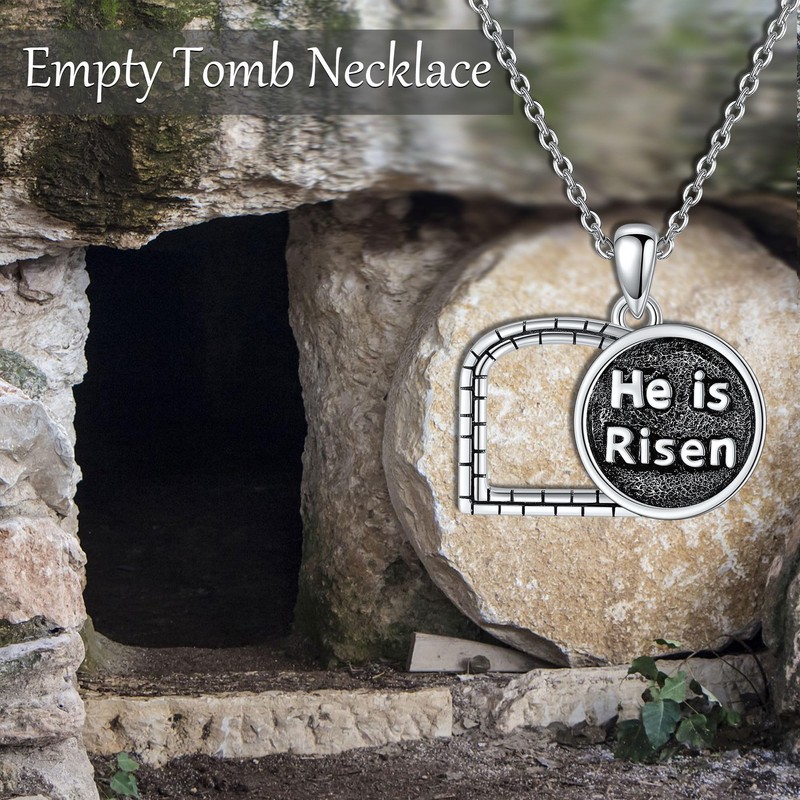 ONEFINITY Empty Tomb Necklace S925 Sterling Silver He is Risen Pendant Necklace Religious Christian Jewellery for Women Men