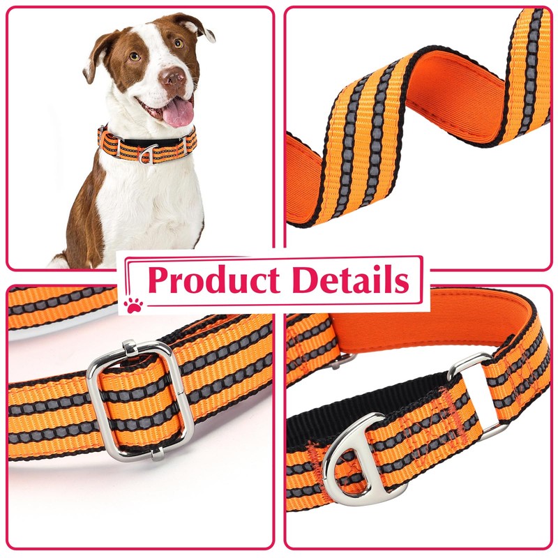ONEFOJOJO Martingale Dog Collars for Dogs, Reflective Nylon Dog Collar with No Buckle Adjustable Training, Walking, Hunting No Slip Dog Collar (Large,Orange)