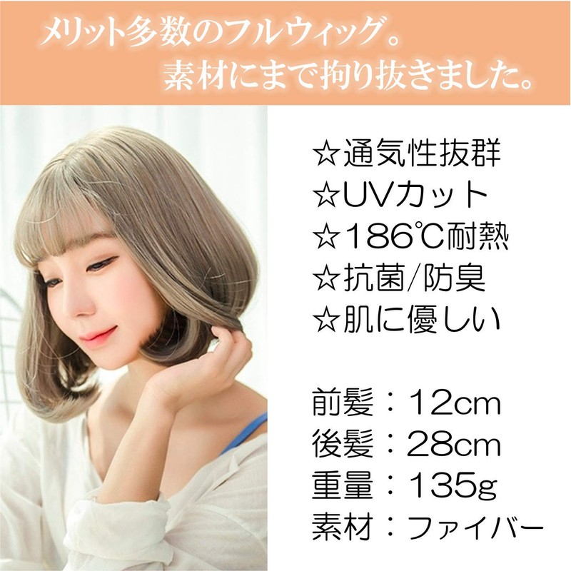 OneHorse Wig, Semi-Long, Bob, Short, Curl, Fluffy, Natural, Small Face, Heat Resistant, Medical Ladies, Imechen, With Net (Ash Gray)