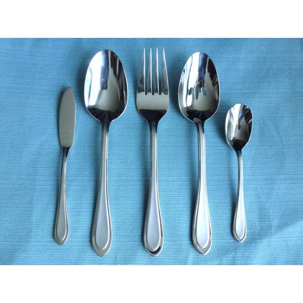 - Includes a serving spoon, pierced spoon, cold meat fork, master butter knife, and sugar spoon