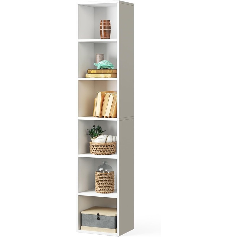 oneinmil Tall Narrow Bookshelf, 6-Tier Cube Display Rack, Modern Corner Bookshelf, Storage Cabinet for Home Office, Home Decorative Furniture, White